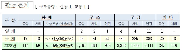 ○ 구조 2건(실종 1, 교통 1)