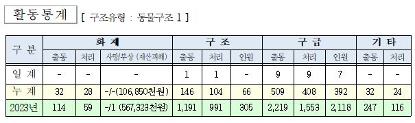 ○ 구조 1건(동물구조 1)