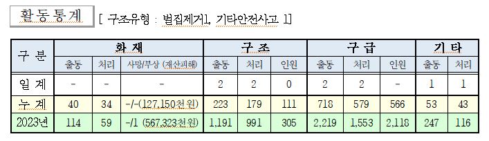 ○ 구조 2건(벌집제거 1, 기타안전사고1)