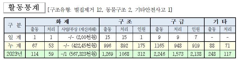 ○ 구조 9건(벌집 7, 산악 2)