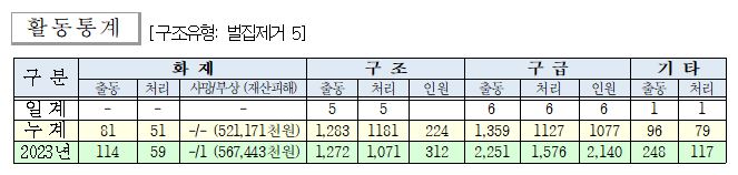 ○ 구조 5건(벌집제거 5)