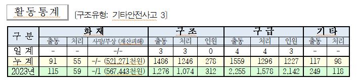 ○ 구조 3건(기타안전사고 3)