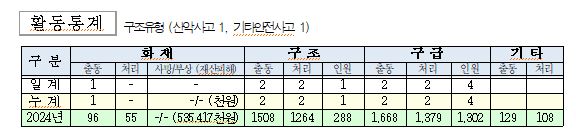 ○ 구조 2건(산악사고 1, 기타안전사고 1)