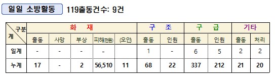 인제소방서 일일소방상황(3. 9.)