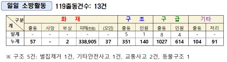 인제소방서 일일소방상황(7. 19.)