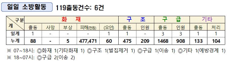 9. 25.(수) 소방활동 상황일보