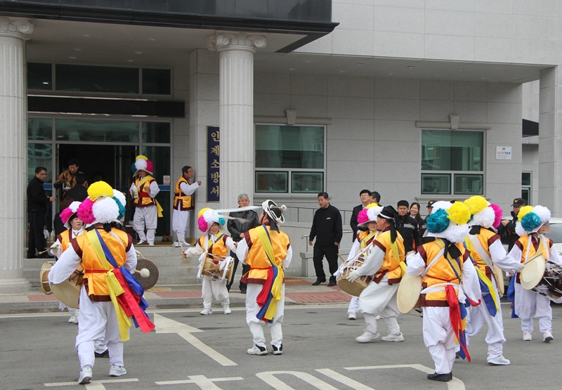 인제소방서(서장 김용락)에서는 2.14일 11시 소방서 앞에서 2014년 정월대보름을 맞이하여 재난현장에서 직원들의 안전사고 예방과 재난사고 없는 인제군민의 안녕을 위하여 인제 천도울림 사물놀이패와 함께 무사고 안전기원제를 올렸다.