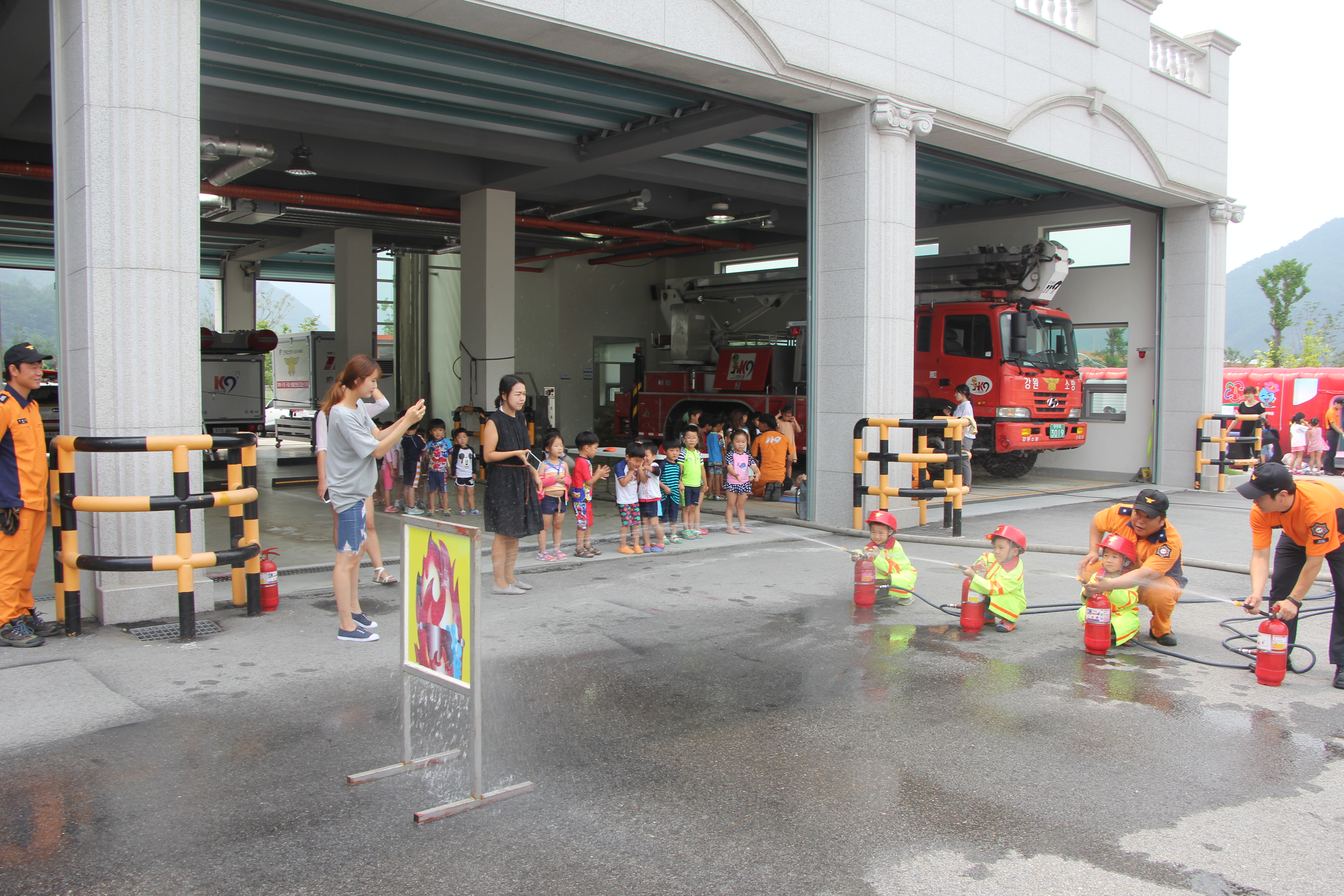 이동안전체험차량, 연기에어바운스, 펌프차 방수체험, 물놀이 안전체험 등 흥미있는 안전교육이었습니다.