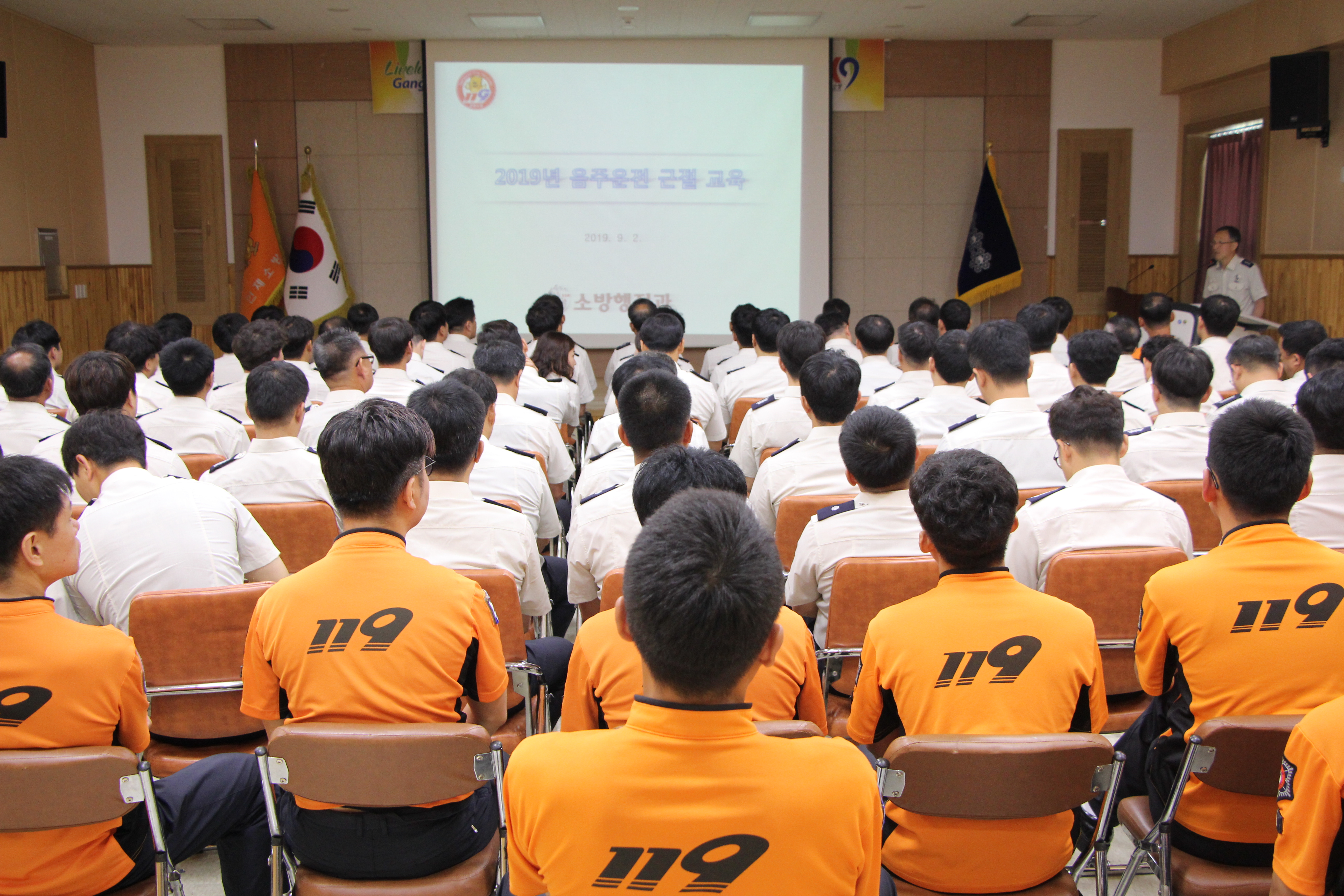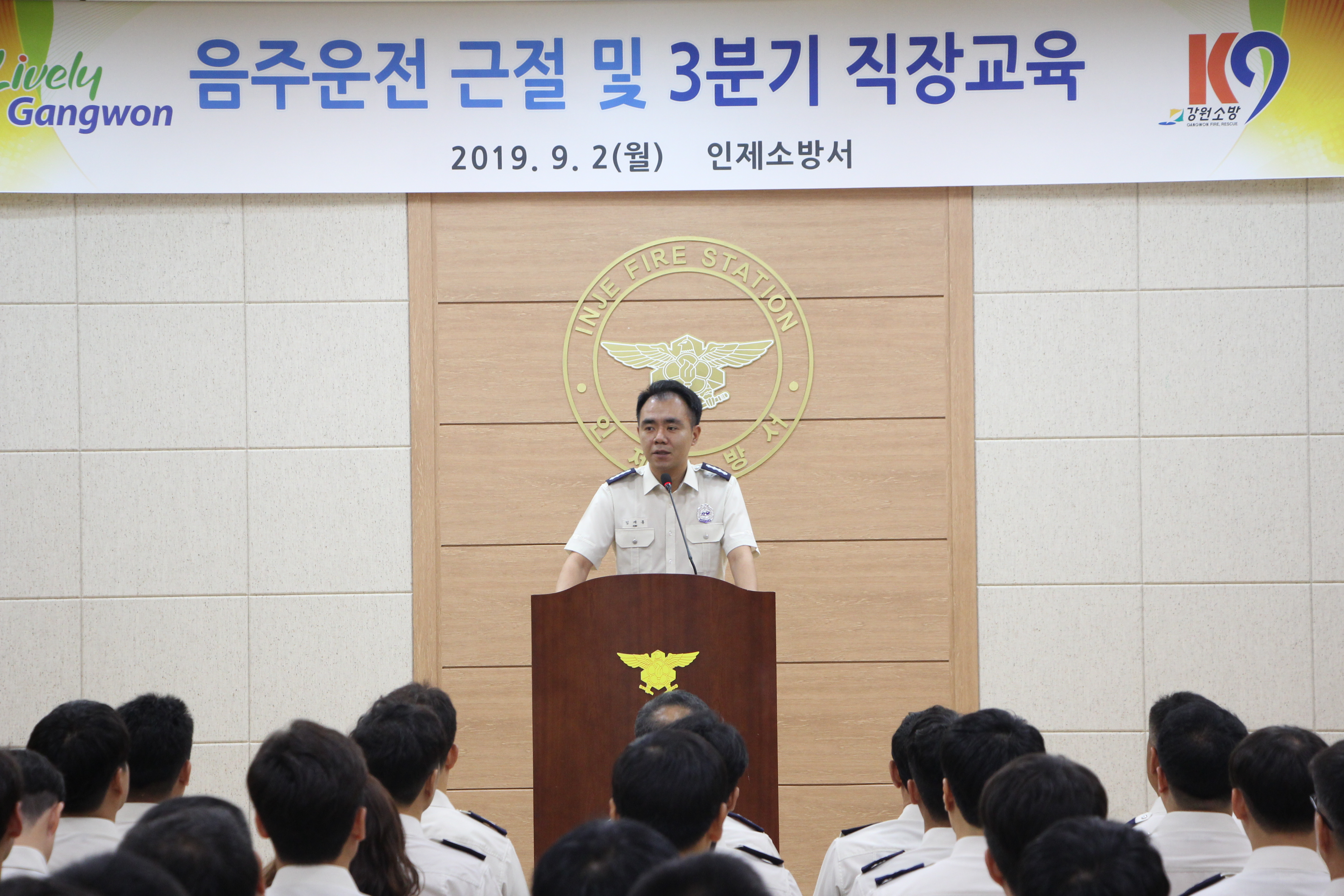인제소방서(서장 김재홍)은 대회의실에서 3분기 정례조회를 실시하고 있다.