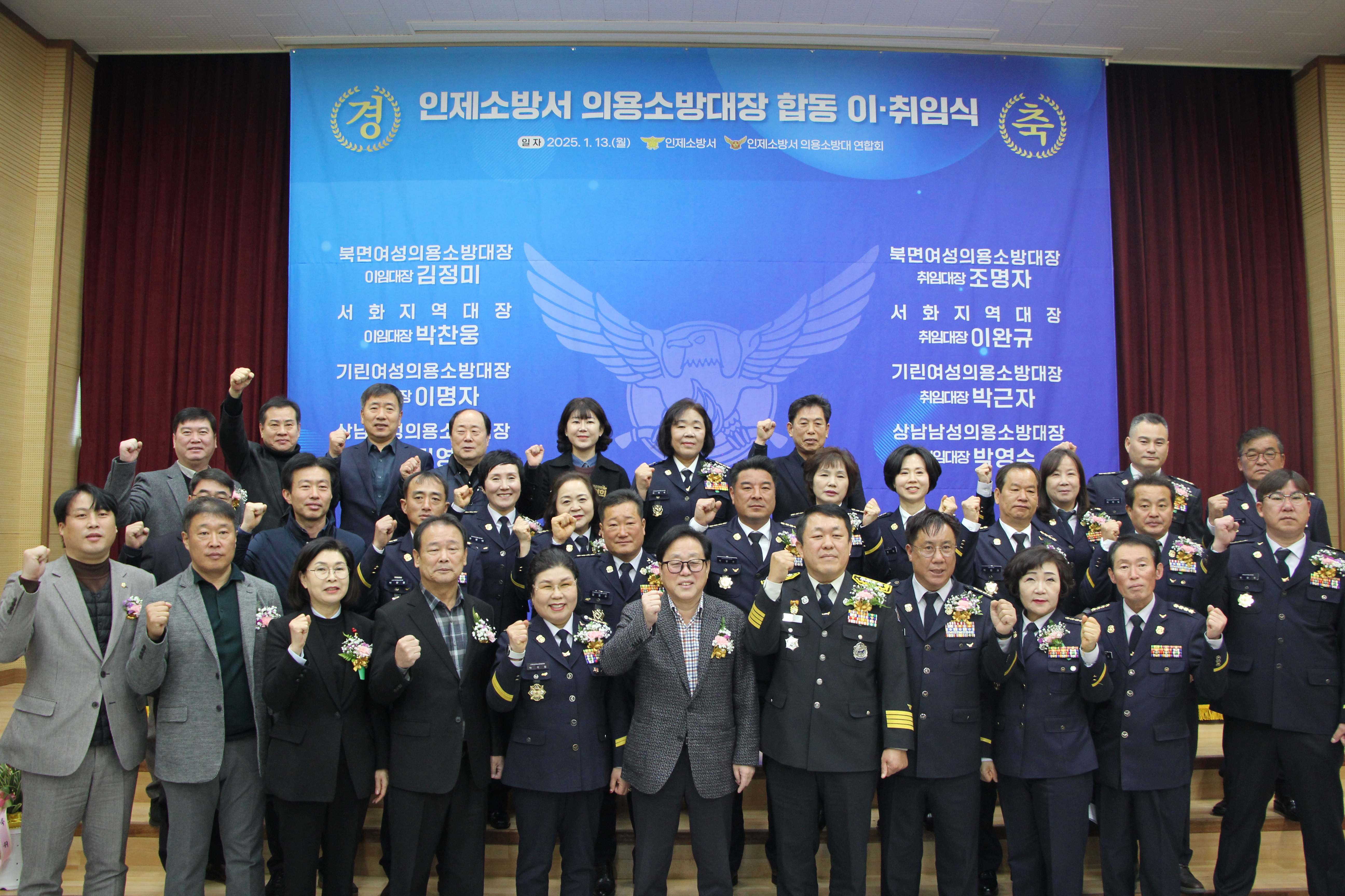 인제소방서 1월13일 인제소방서 의용소방대 통합청사에서 의용소방대장 합동 이·취임식을 실시하였습니다.