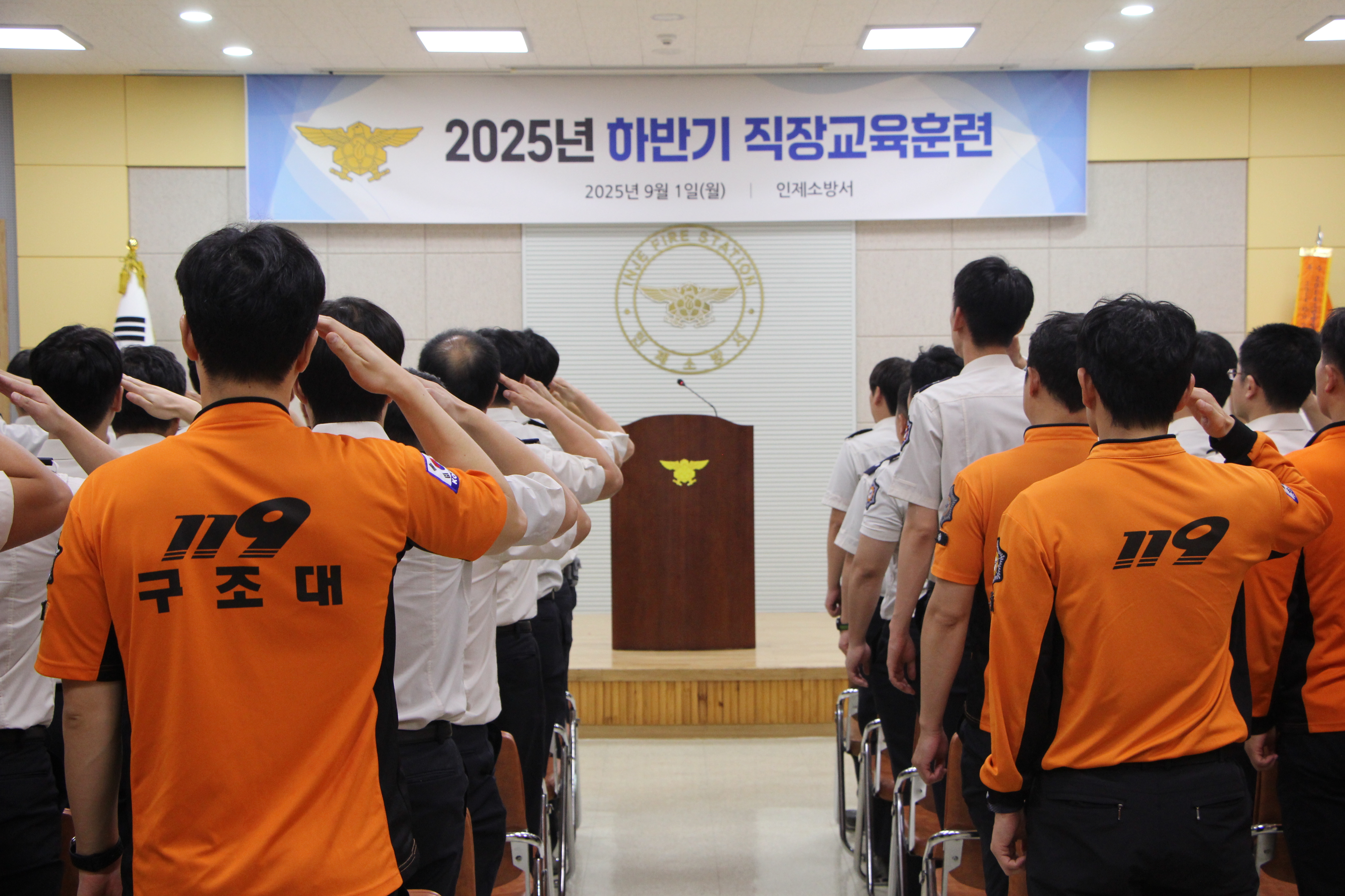 인제소방서는 1일 본서 대회의실에서 2025년 하반기 직장교육을 실시했습니다.