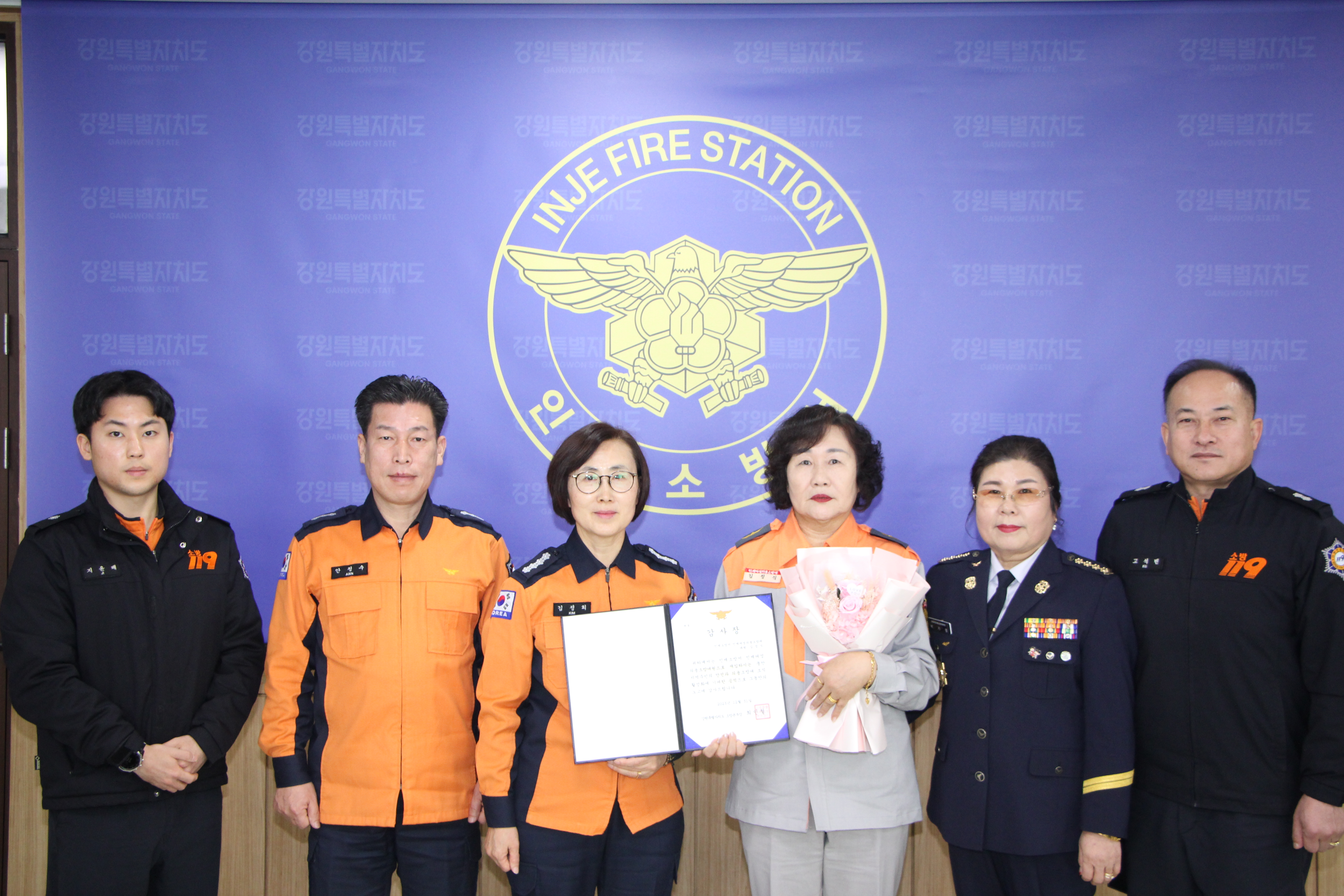 김정희 인제소방서장은“15여 년간 의용소방대원으로서 지역주민의 생명과 재산을 보호하고, 지역사회의 발전을 위해 봉사하신 김정식 의용소방대원의 노고에 감사드린다.”고 전했다.