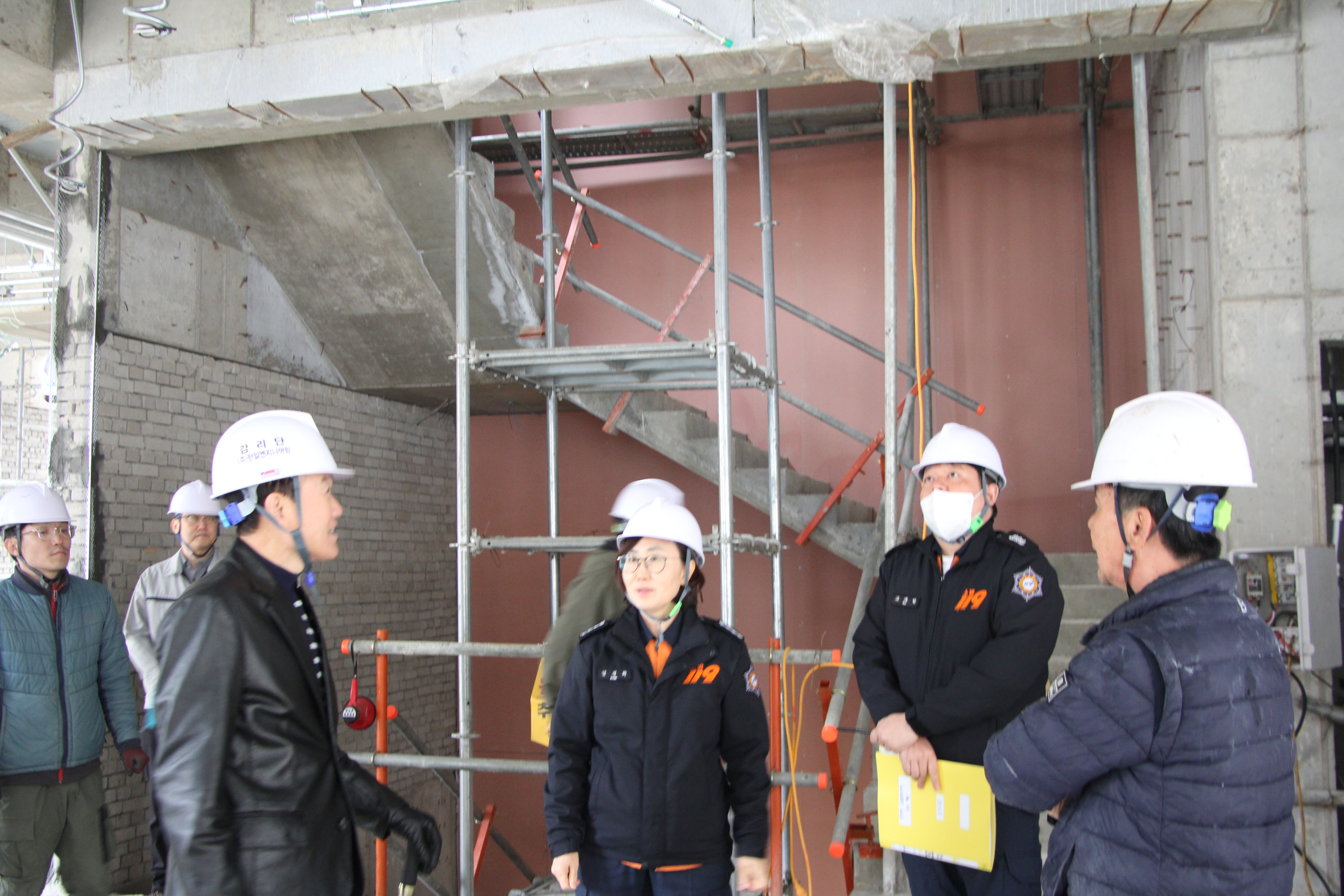 이번 현장지도의 주요사항으로는 ▲용접·용단 작업 시 주의 요망 ▲소방차량 부서·진입로 장애 요인 확인 ▲소방통로·피난통로 확보 ▲각 층별 임시 소방시설 확인 ▲기타 화기 작업 시 불티 주의 등 이다.