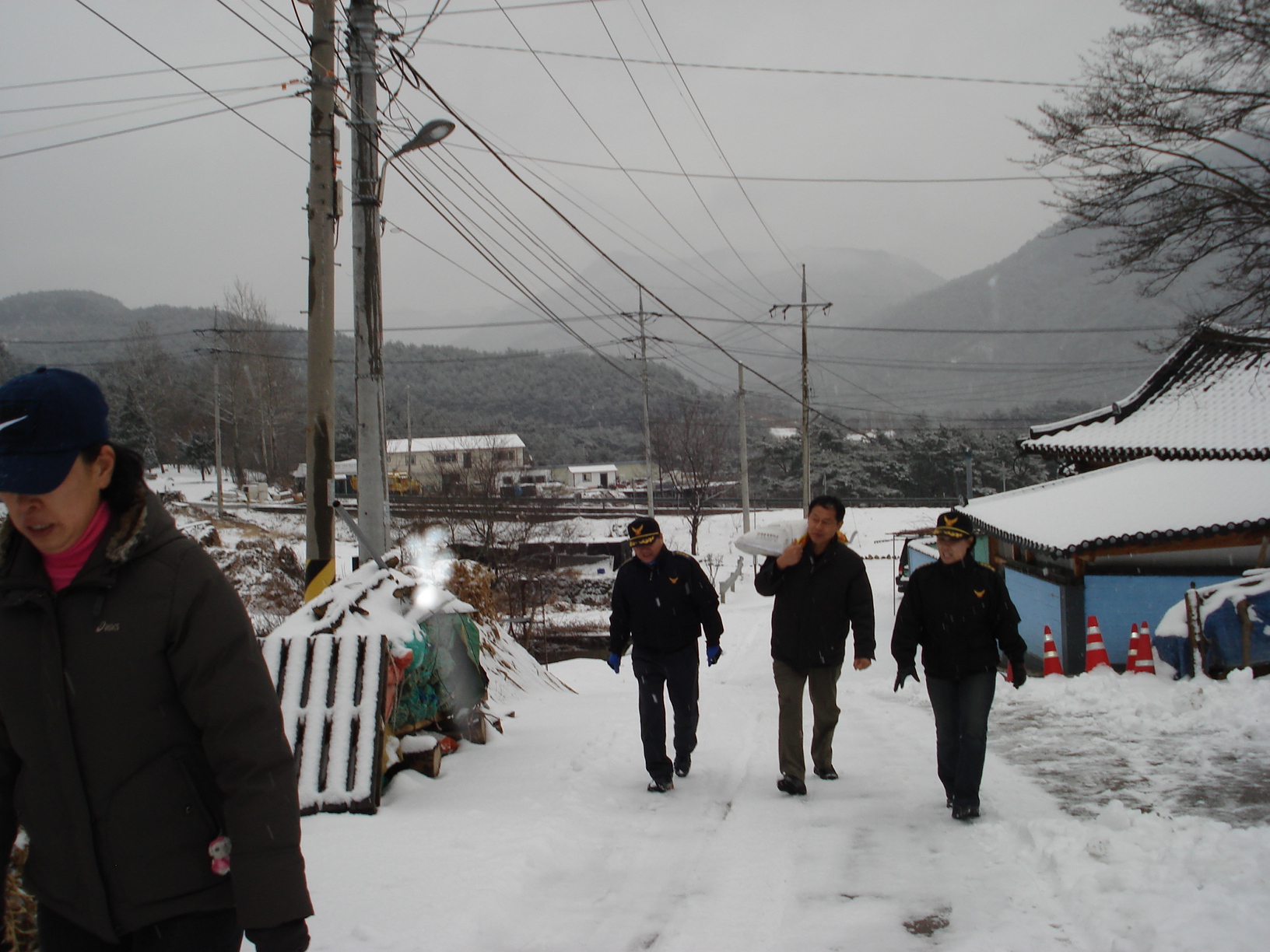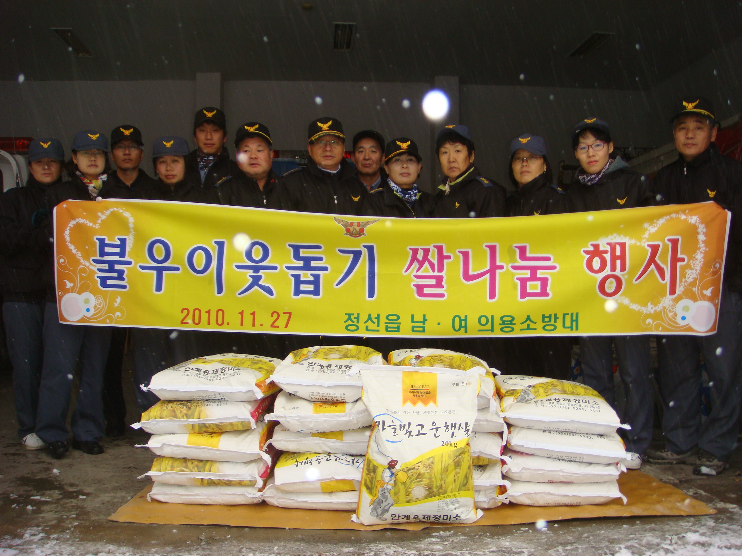 정선 여성소방대장(장순자) 외 각 남 .여 대원들은 11월 27일 함박눈이