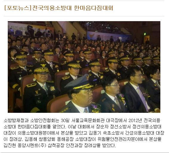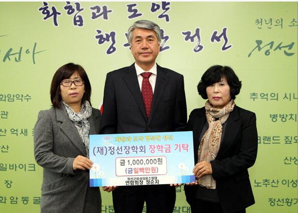 정선군여성의용소방대연합회장(장순자)은 10월 30일 2012년 전국소의용소방대 한마음다짐대회에서 의용소방상 본상 시상금 100만원을 11월5일 정선장학회에 향토장학금으로 기탁했다.