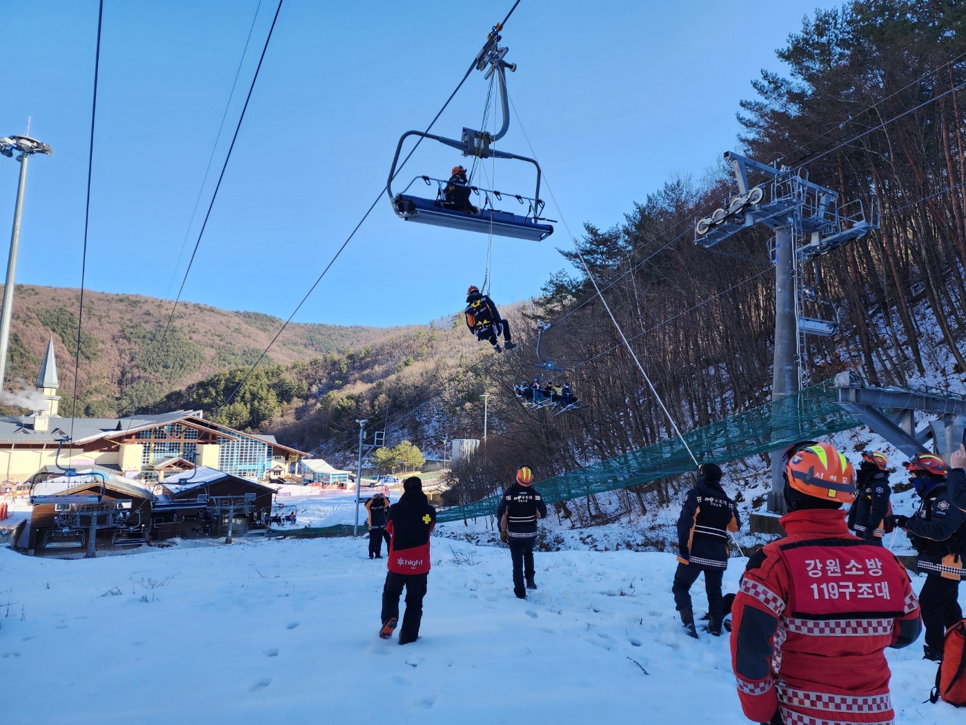 ➤이날 훈련은 최근 스키장 리프트 사고가 증가함에 따라 사고 대응능력을 강화하기 위해 마련됐다. 주요 내용은 ▲리프트 멈춤 사고 시 초기 대응 조치 ▲케이블 도르래 방법(연속적 구조가 가능한 방법)을 활용한 인명구조훈련 ▲관계자 및 이용객 리프트 사용 소방안전교육 등이다.