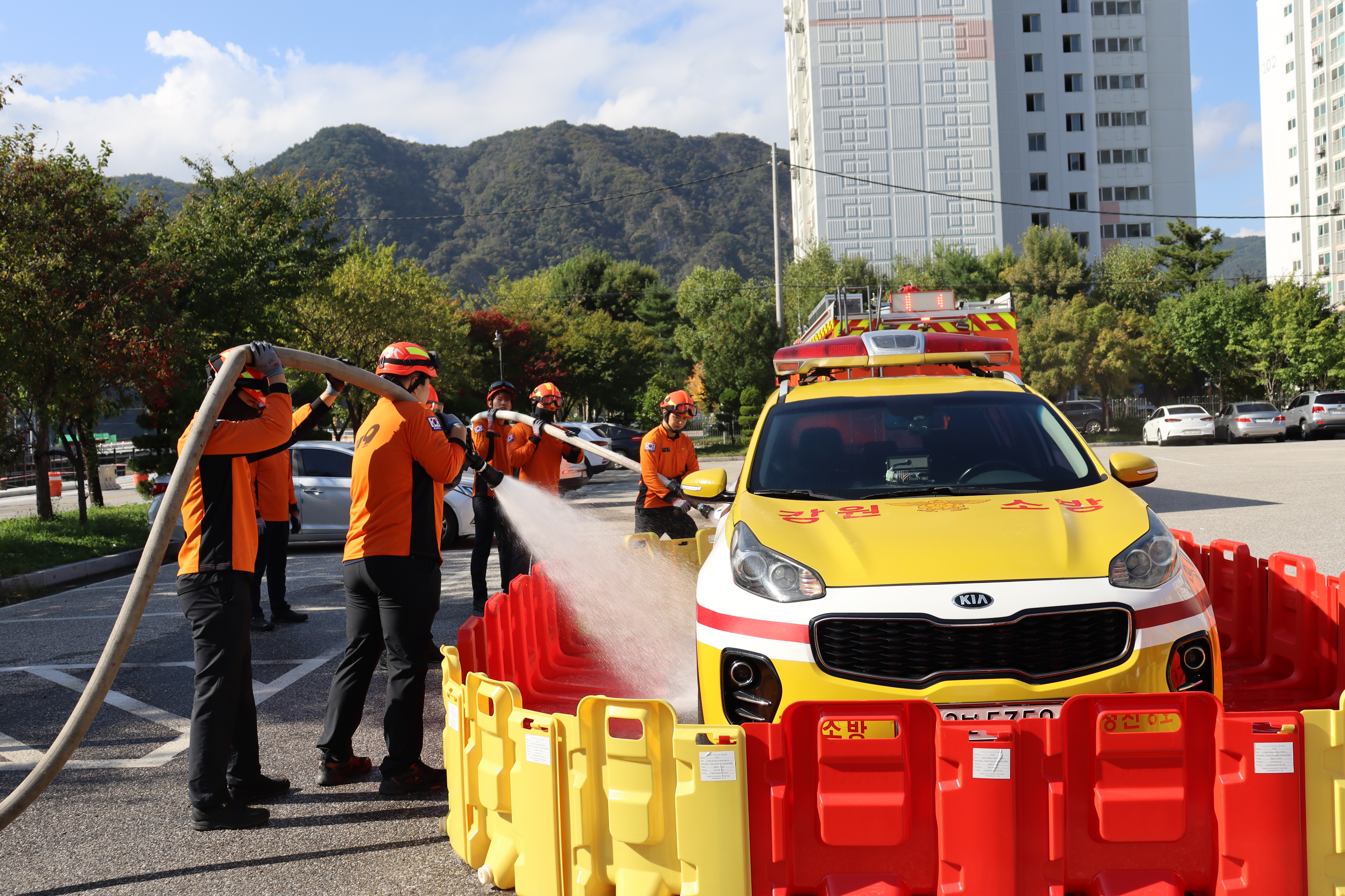 2024-10-08 정선소방서, 이동식 수조를 활용한 전기차 화재 소방훈련 실시