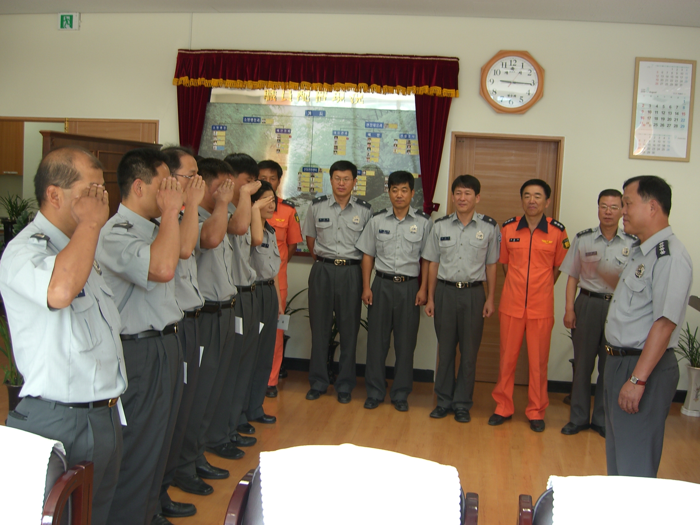 정선소방서(서장 우원기)는 그동안 임지에서 열심히 근무하다가 2009년 8월 5일자 인사발령에 따라 타 관서로 전출을 가게 된 직원들을 불러 모아 아쉬운 석별의 정을 나누고 전별금을 전달하였습니다. 전출 직원여러분! 정말 고생 많이 하셨습니다. 우리 또 만나요...
