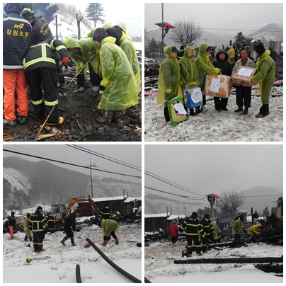 정선소방서(서장 우원기) 임계여성의용소방대(대장 유춘란)는 3월 4일 도전리 화재피해가구에 위문품 전달 및 폐기물 처리를 도왔습니다.