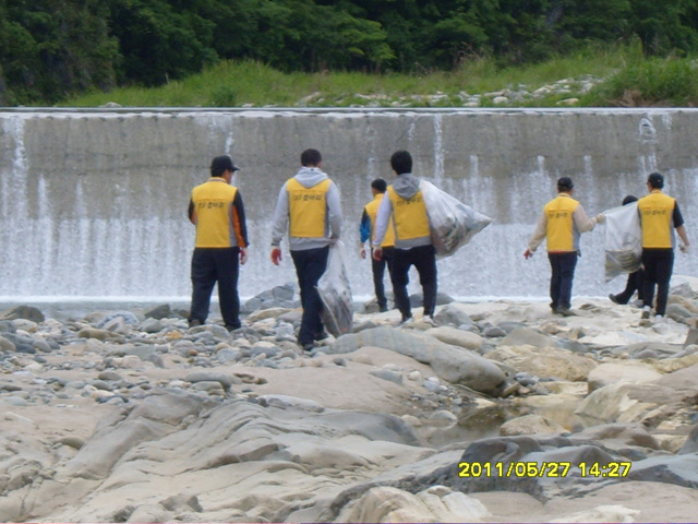 마을 독거노인의 고추밭에 말뚝을 다 박고, 그냥 돌아오기가 좀 아쉬워 하천과 길가에 쓰레기를 주웠습니다. 산으로 병풍을 두른 아름다운 문곡리 마을을 계속해서 지켜 나가기를 희망합니다.