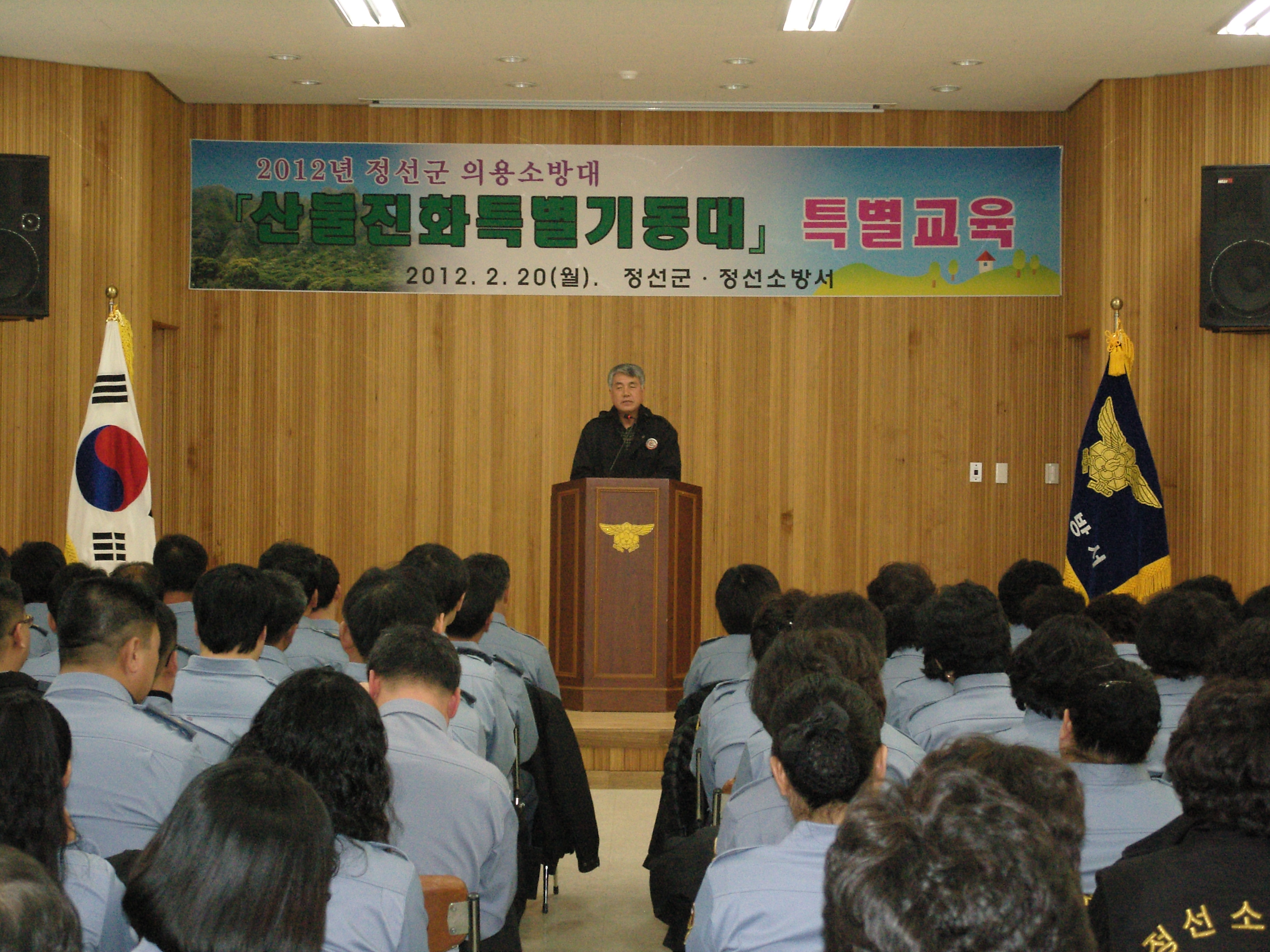 정선소방서(서장 박창진)는 2월 20일 정선소방서 대회의실에서 정선군수와 산림정책과장을 강사로 초빙하여 정선군 의용소방대 산불진화특별기동대원 130명을 대상으로 산불예방 및 진화업무에 대한 특별교육을 실시하였다.