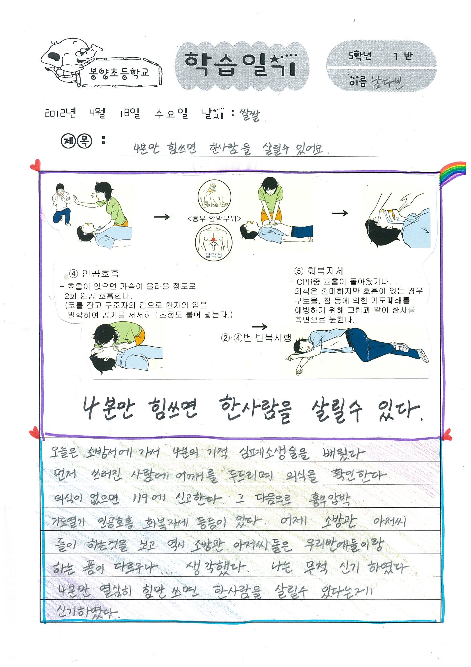 지난 18일 119소년단 창단식 및 소방안전체험을 마친 봉양초등학교 소년단원들이 활동 후기를 보내왔습니다. 내용이 참~ 순수하네요.