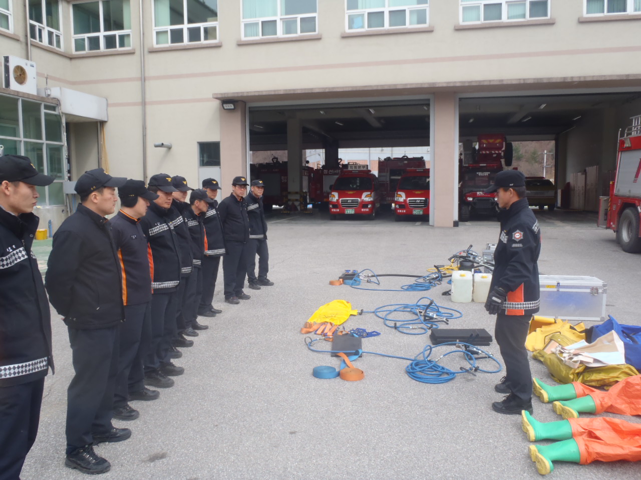 훈련내용으로 화학구조장비의 종류소개, 조작 및 사용법을 숙지하고, 유해물질 누출사고시 신속한 대응 및 구조활동으로 인명피해와 피해확산을 예방하는데 있다.