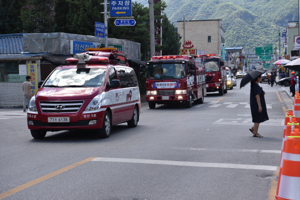 ➤ 정선소방서(서장 소기웅)는 22일 오후 2시 정선읍 소재 정선아리랑시장 일원을 대상으로 민간인(주민) 동승 유관기관 합동 소방차 길 터주기 훈련을 실시했다.
