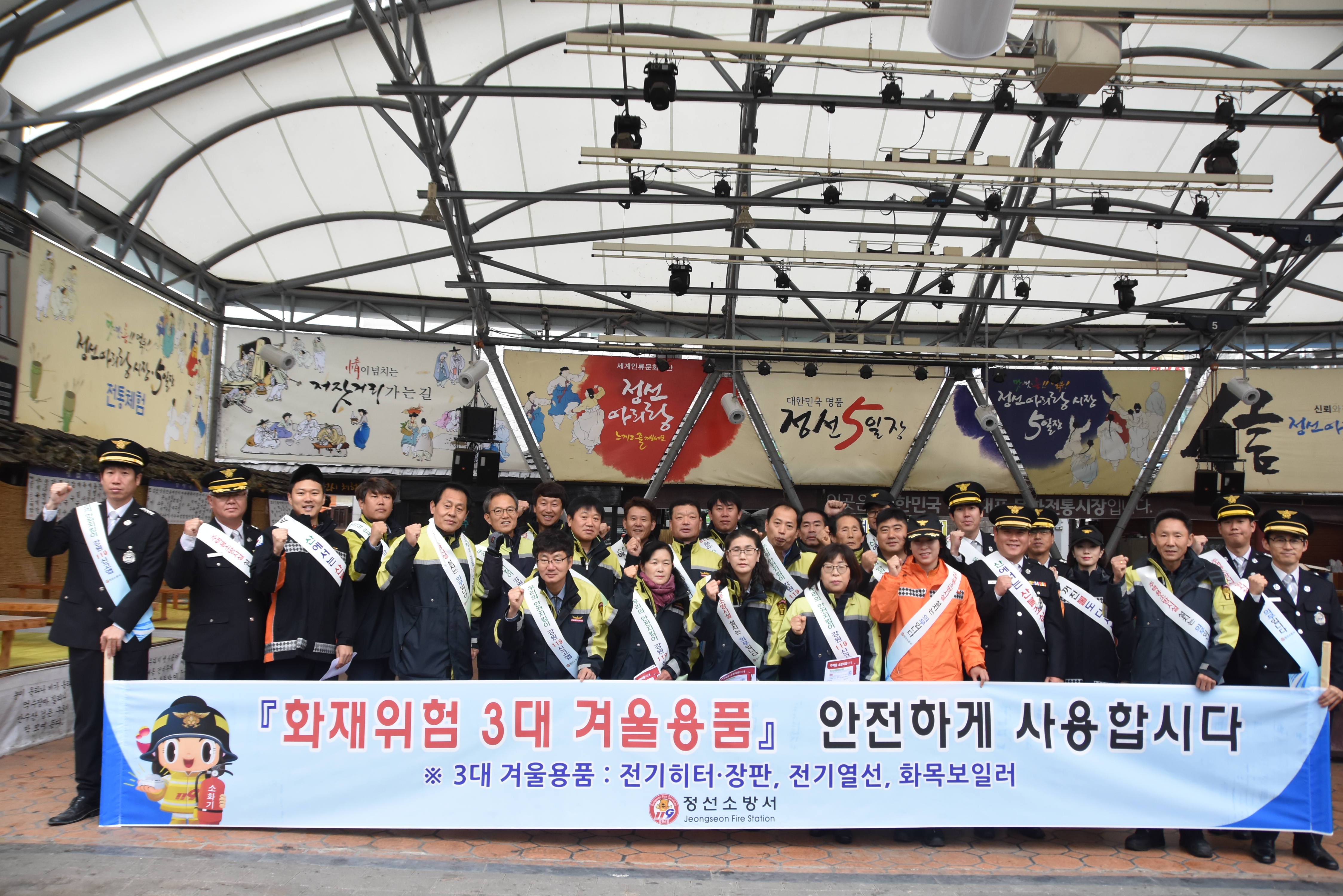 정선소방서에서는 소방의날 식전행사로 화재예방 캠페인 및 소방차 카퍼레이드를 실시했다.