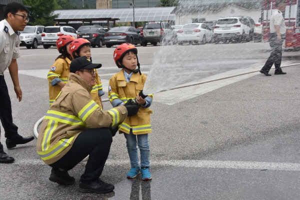 정선소방서(서장 김용한)는 19일 오전 10시 대회의실 및 후정에서 남평초등학교 1학년 학생 4명 및 병설유치원 원아 3명을 대상으로 ‘소방안전체험교실’을 운영했다.