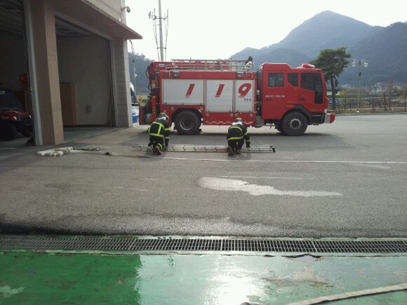 정선소방서(서장 박창진) 정선안전센터(2011.11.22)에서는 화재진압3, 4인조법을 실시하였습니다. 화재에 대비해 항상 실전과 같은 훈련에 임하겠습니다.