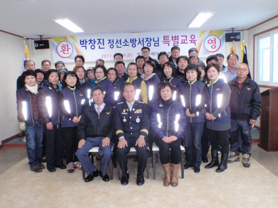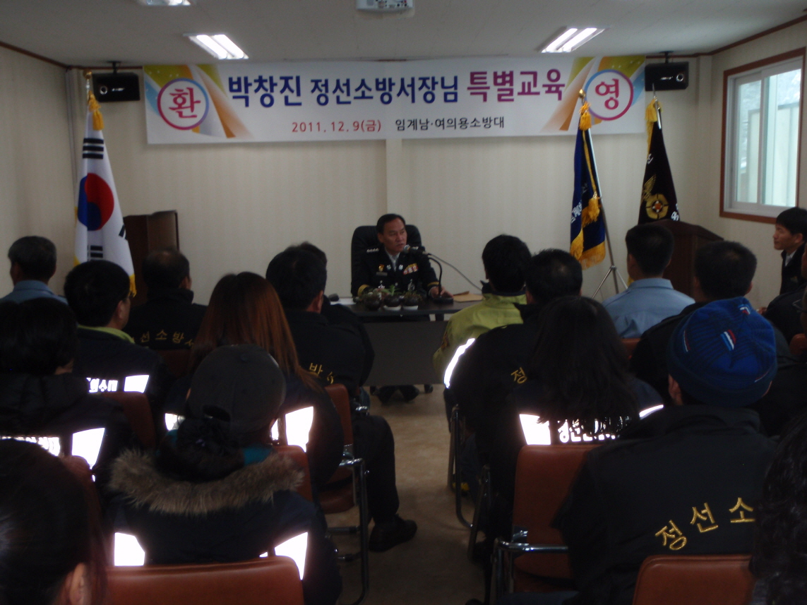 정선소방서장(서장:박창진)은 2011.12.9일 14:00시 임계남여의용소방대원에 대한 특별 교육을 실시하여 겨울철 소방안전대책 및 당부사항을 전달하고, 특히 겨울철 화재출동 및 대기근무에 철저를 기해줄것을 당부 했다.