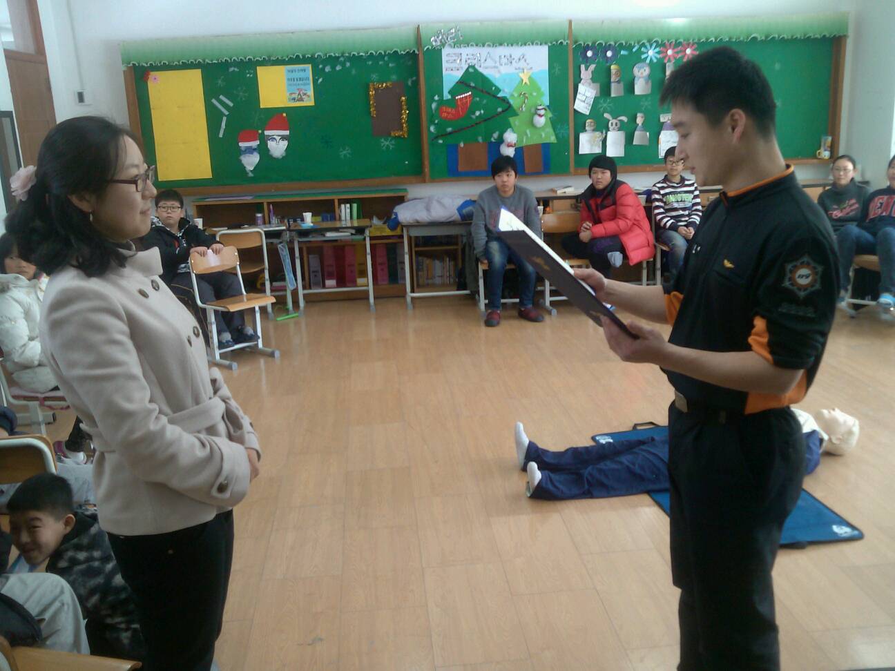 정선소방서(서장 박창진) 고한119안전센터에서는 금일 11:00부터 학생 및 교사 대상으로 심폐소생술 교육 및 위촉장 전달을 실시하였습니다.