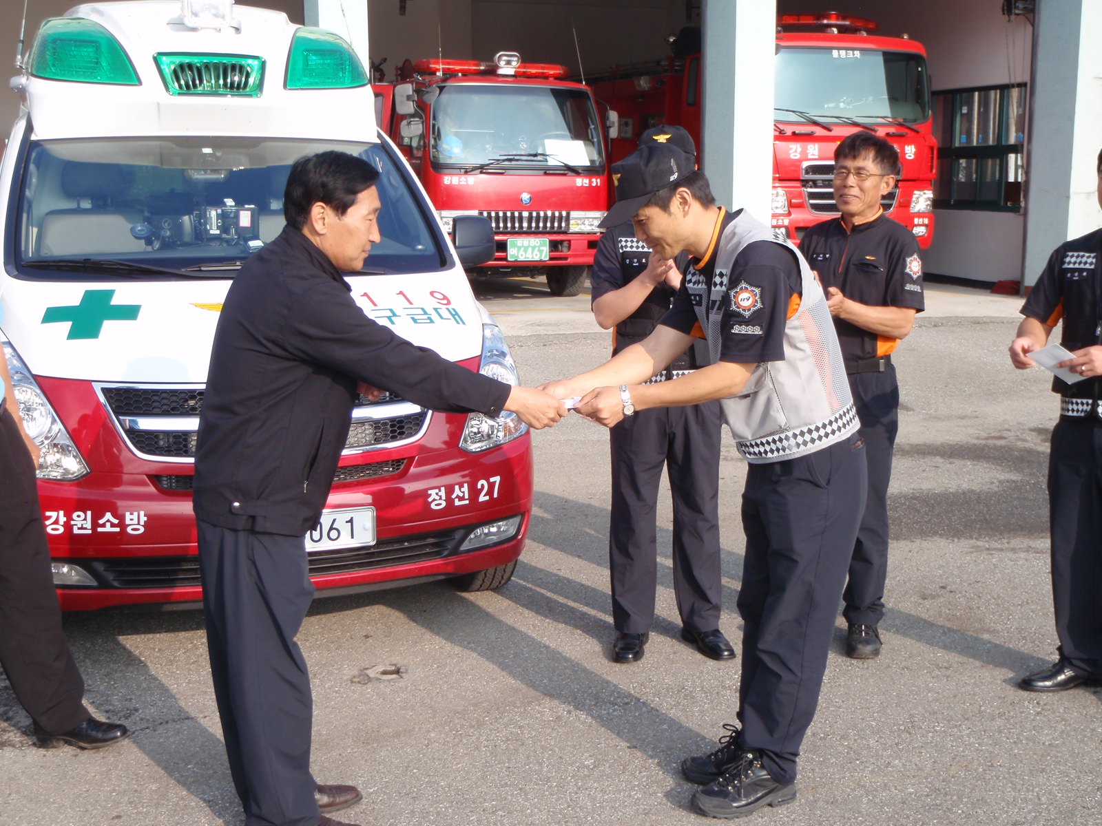 정선소방서(서장 박창진) 임계119안전센터에서는 금일 제25회 소방기술경연대회 참가에 앞서 화이팅을 외치고 의소대장님과 센터장님의 격려금 증정이 있었습니다. 열심히 훈련한만큼 대회에서도 좋은 성적을 거둘수 있도록 많은 응원 부탁합니다.