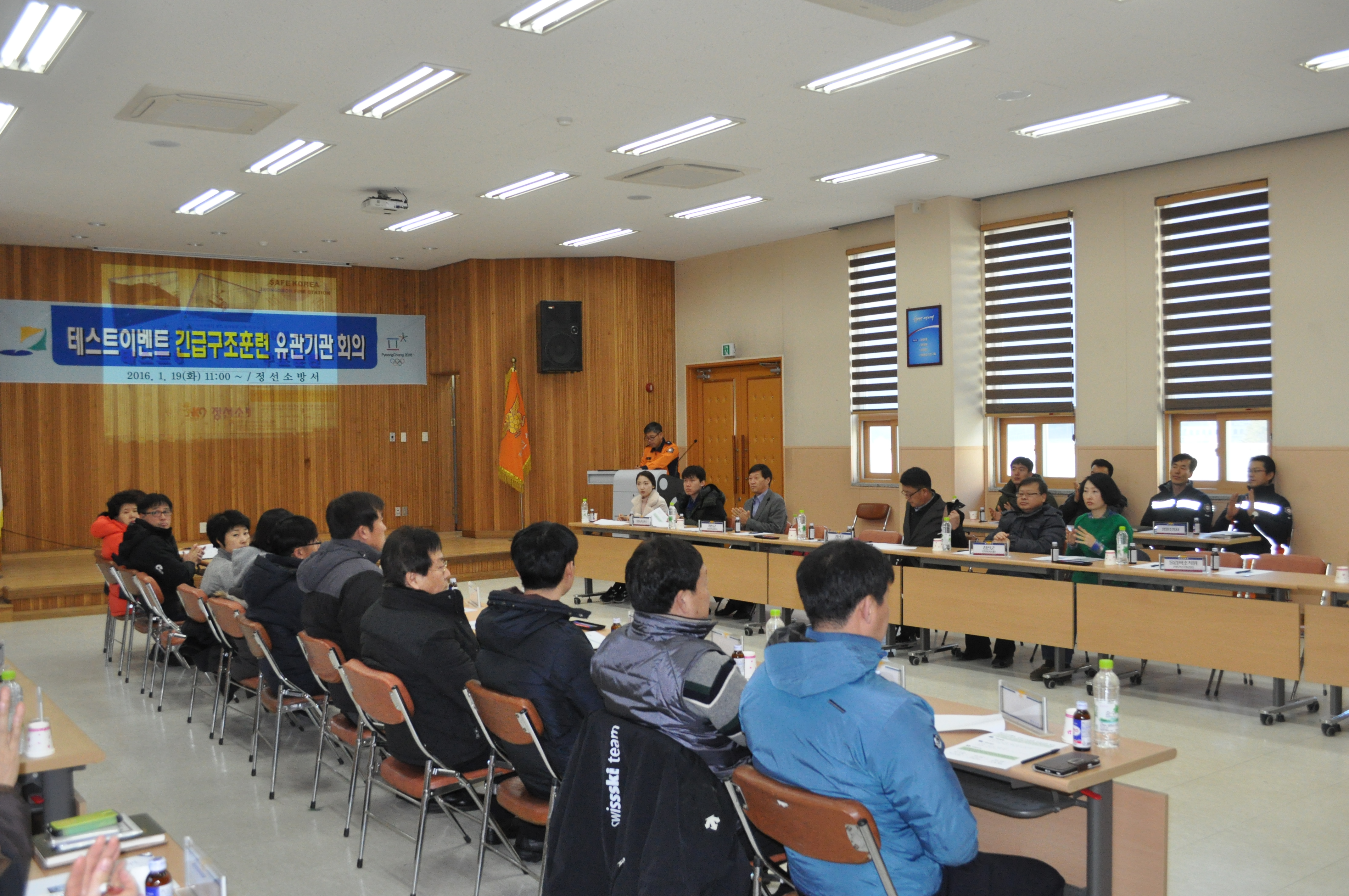정선소방서(서장 이기중)는 2016. 01. 19 정선소방서 3층 대회의실에서 2018 평창동계올림픽 테스트이벤트 긴급구조훈련 유관기관 회의를 가졌습니다.