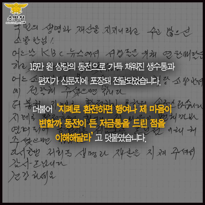 연탄 나눔 소방관에 감동한 어르신이 마음 따뜻한 '저금통 기부' 2