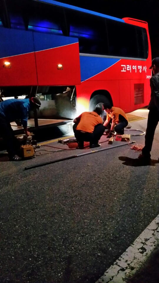 갑자기 119가 생각나서 전화드렸더니 급히 달려오신 119소방 대원님들이 오셔서 버스를 고쳐주셨어요