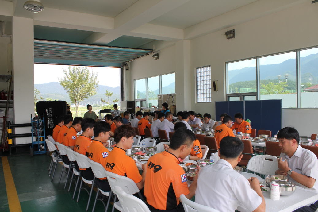 평창소방서(서장 정광현) 평창여성의용소방대(대장 고연희)는 16일 말복을 맞아 직원들의 사기진작을 위하여 음식을 마련하였다.