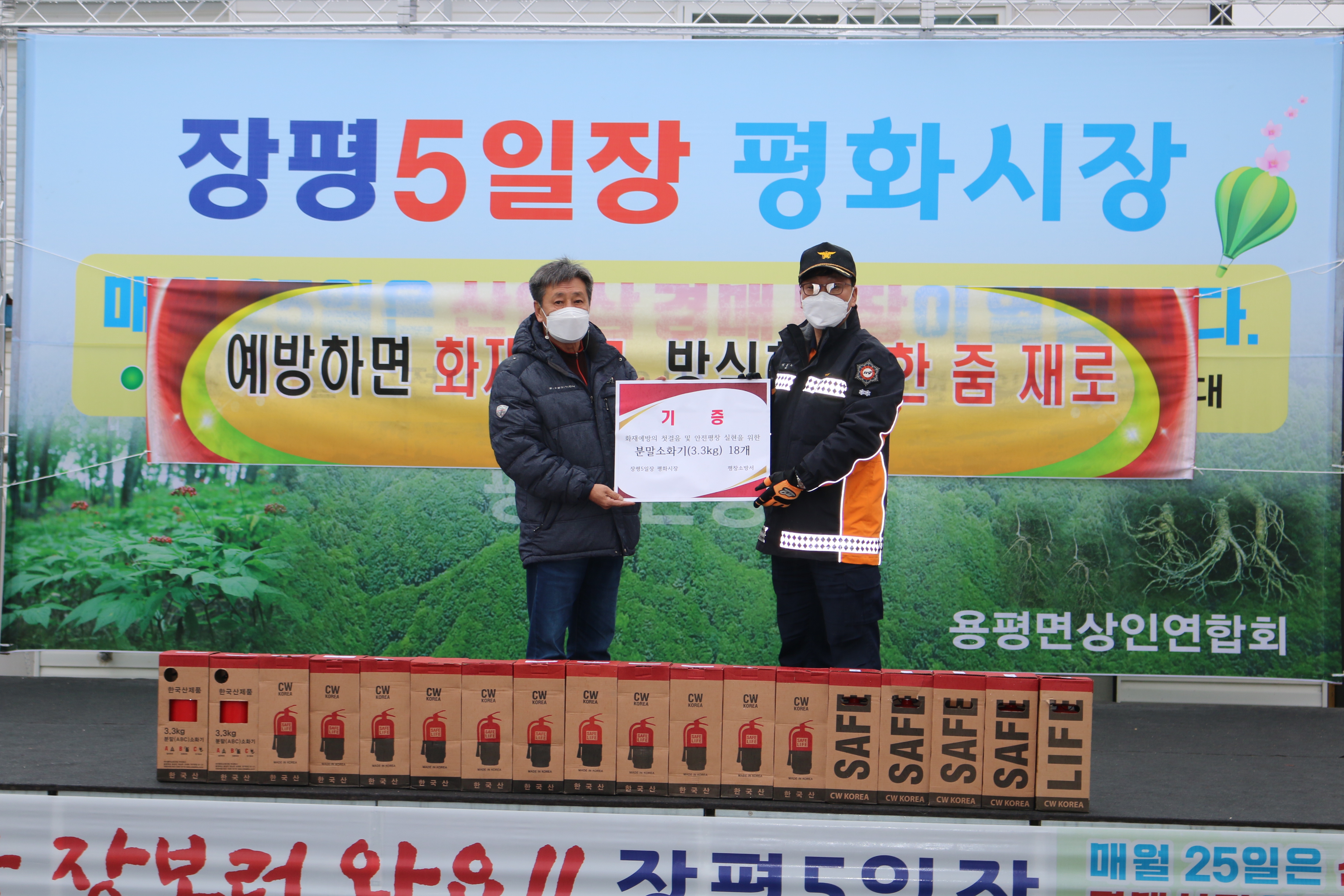 평창소방서, 미등록 전통시장 화재 예방 위해 소화기 기부