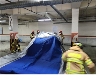 이번 훈련은 지하주차장 화재 발생 시 특성에 맞는 화재 진압 작전을 마련하고 질식소화덮개를 이용한 차량화재 대응훈련 등 화재 진압활동훈련으로 진행되었다.