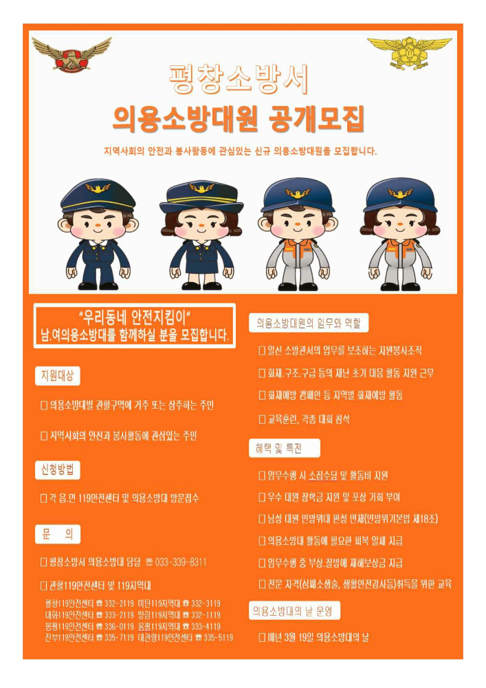 2분기 평창소방서 의용소방대원 모집 공고