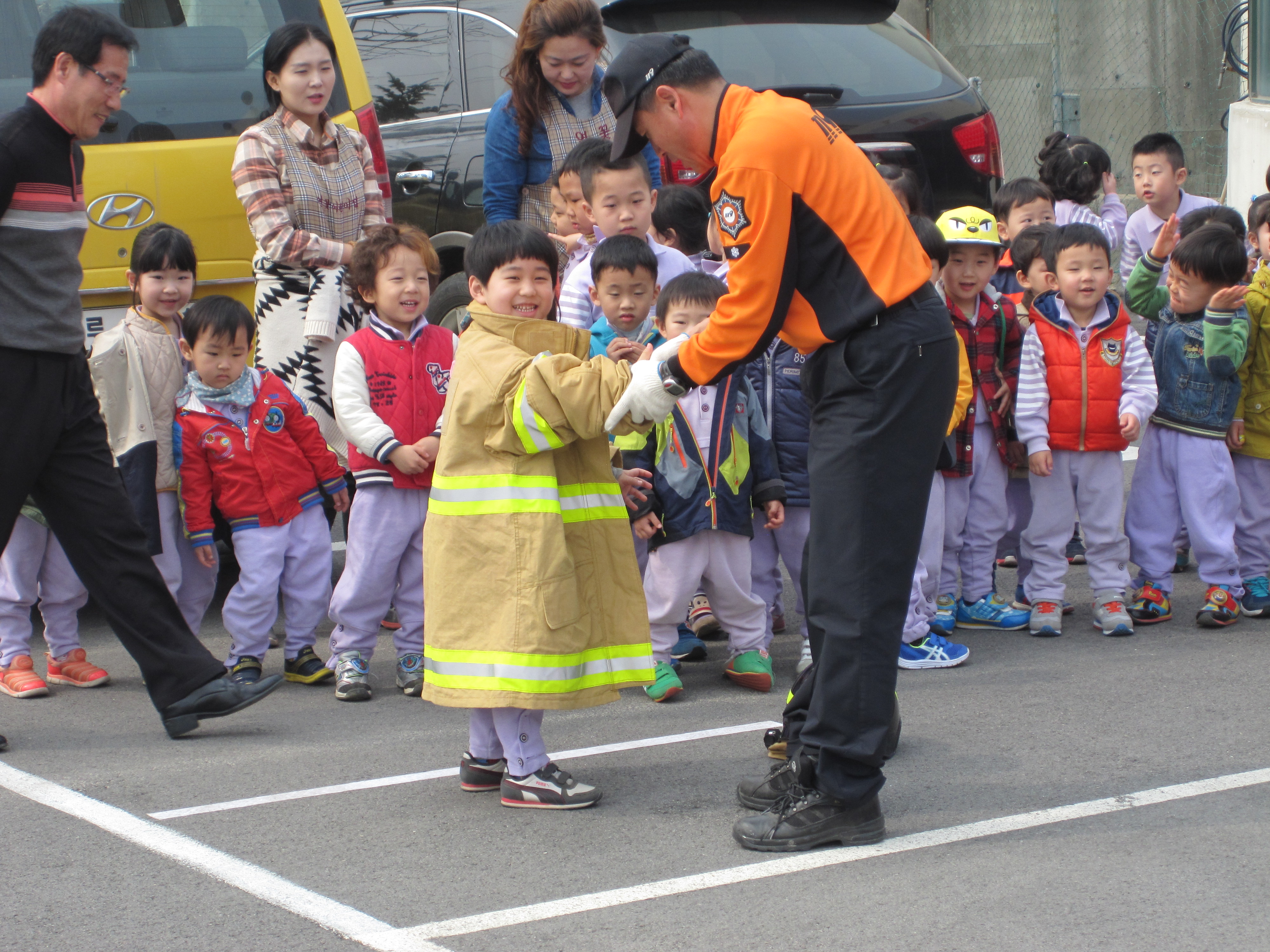4. 내 용 : 소방차량 견학 및 방수시범.