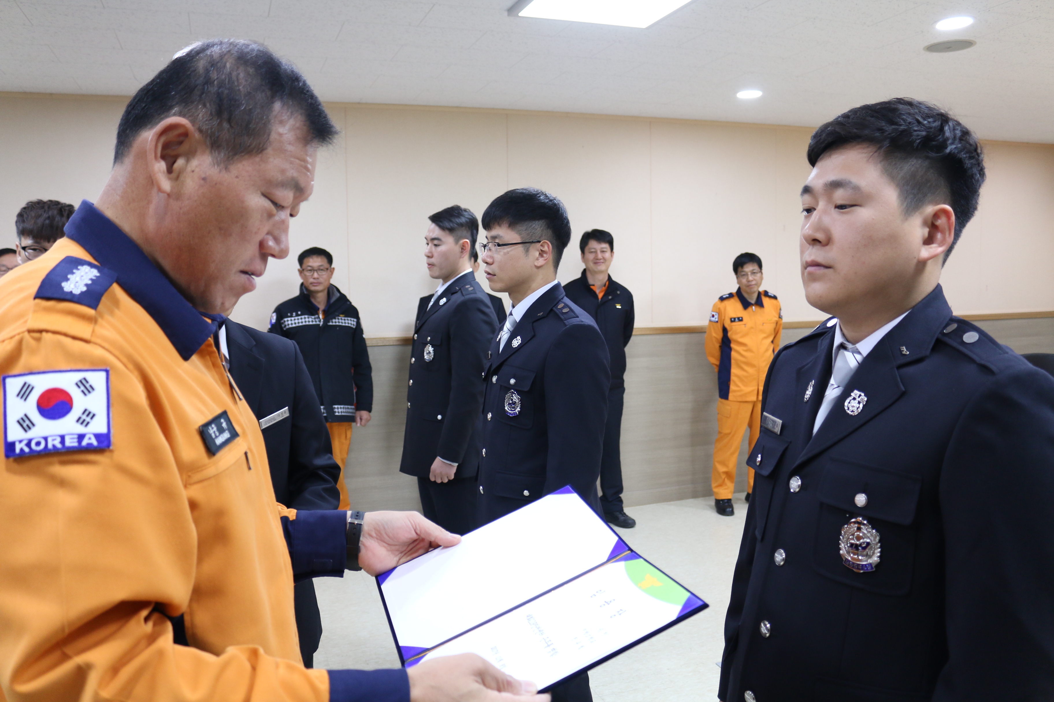 14일 오전 9시 소방서 소회의실에서 승진인사발령에 따른 임용장 수여식이 있었습니다.
