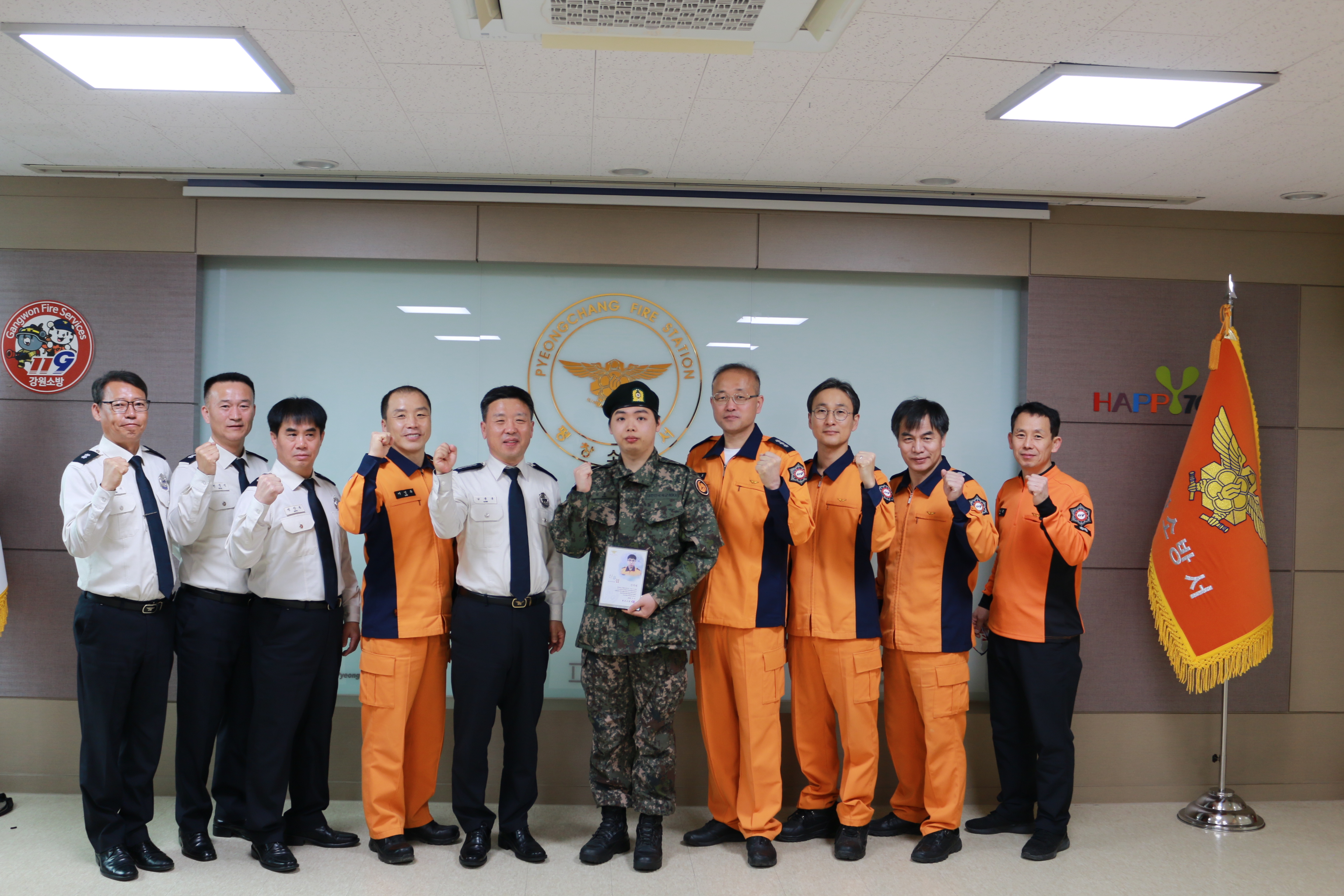 남종훈 서장은 “건강하게 전역하는 의무소방에게 진심으로 축하를 전한다.”라며, “전역 후에도 사회에 빛이 되는 사람으로 성장하길 빈다.”라고 전했다.