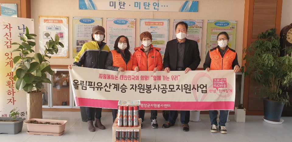 이날 문성이 대장 외 10명은 평창군자원봉사센터로부터 지원을 받아 코로나19 방역수칙을 준수하며 교육시설을 방문해 소화스프레이 전달식을 진행했다. 화재 예방과 응급상황 대처 팸플릿 배부도 병행했다.