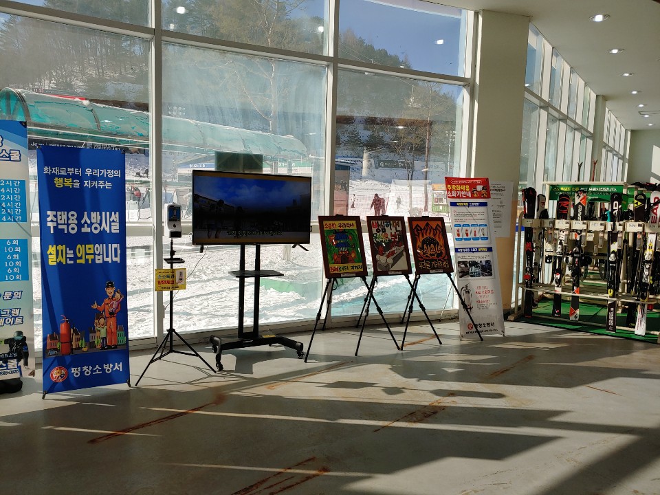 주요 홍보 내용은 ▲홍보영상송출(비상구는 생명의 문, 불나면 대피먼저, 주택용 소방시설 의무설치, 완강기 사용법 등) ▲홍보배너 비치(주택용 소방시설 의무 설치, 주방용 소화기 설치) ▲불조심 포스터 비치(불조심 강조의 달 입상작) 등이다.