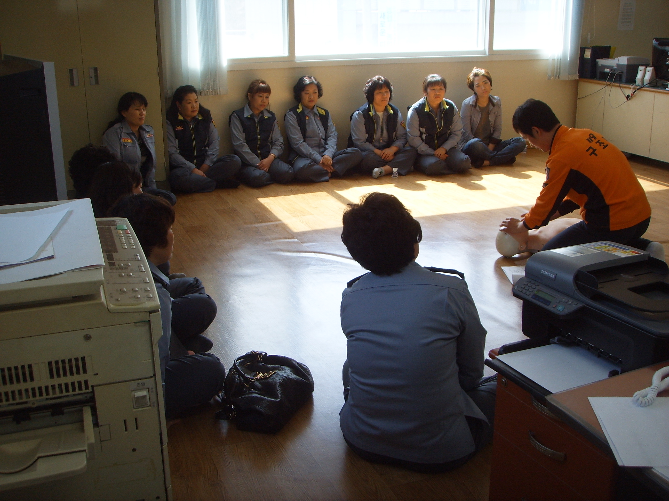 4월 정기교육을 실무교육(심폐소생술,부목 고정 응급처치) 으로 교육을 마쳤습니다