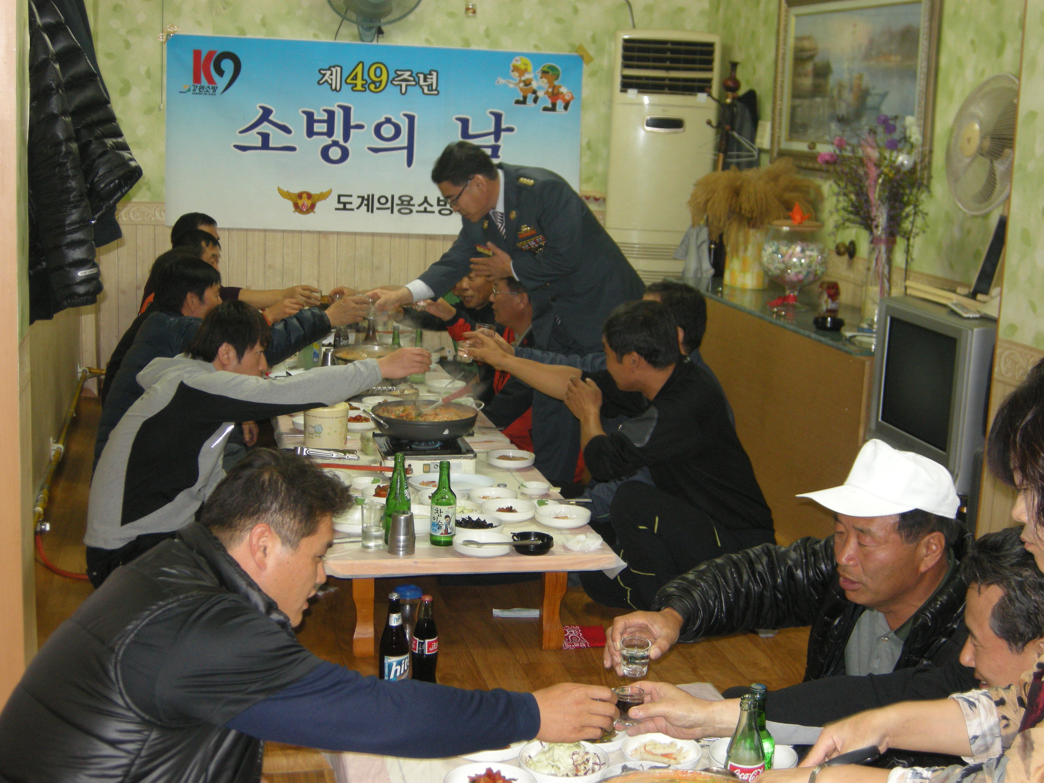 녁6시 도계 바다해물식당에서 제49주년 소방