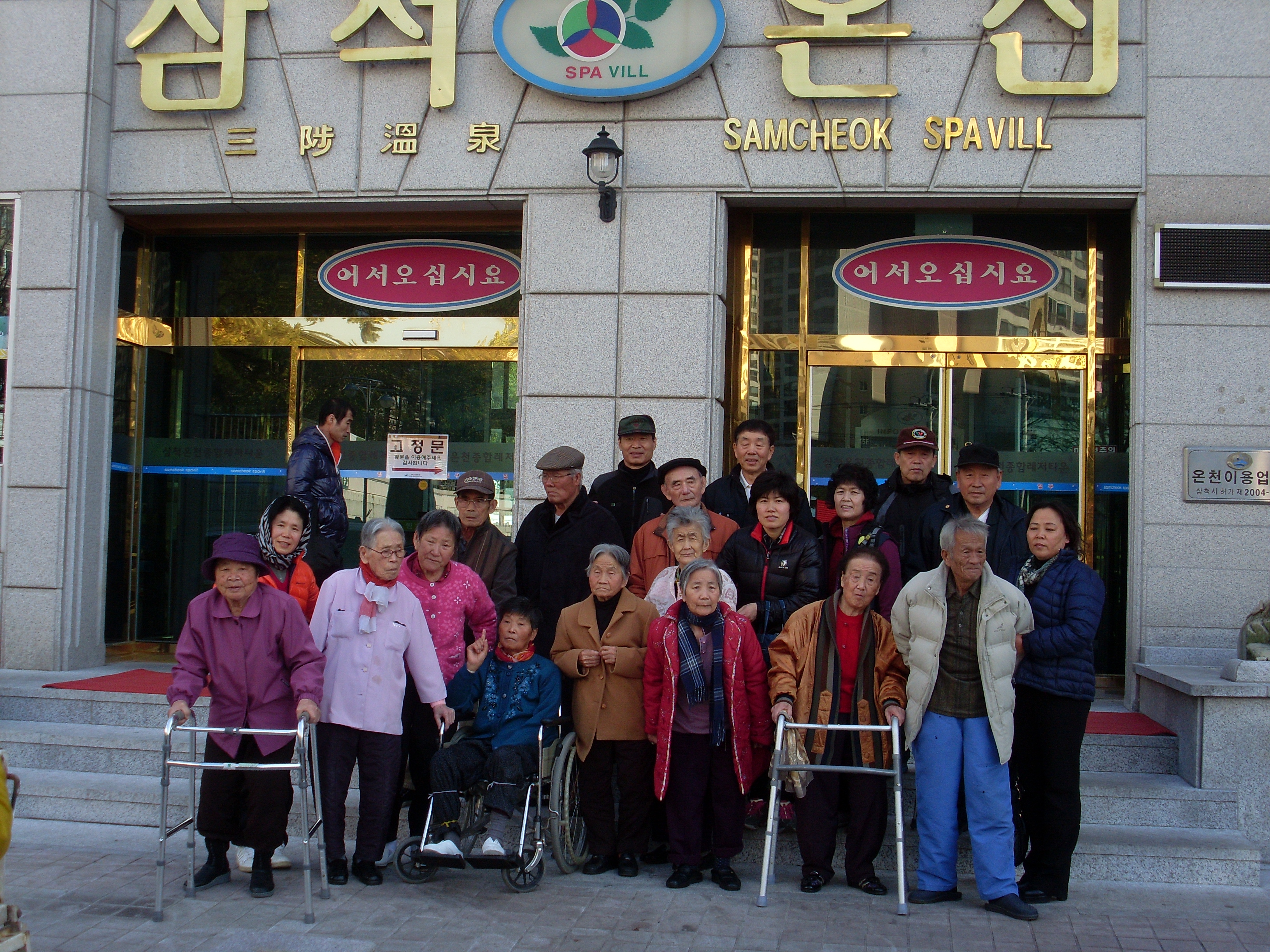 2011. 11. 25일 삼척사회복지회관 주간보호소 거동불편하신 어르신들 모시고 온천식당에서 식사하시고 대장(최금순), 대원들과 어르신들을 등밀어드리고 팔다리 시켜 드리는데 몇달전보다 야위여 지신 모습을 보니 마음이 짠햇습니다. 고맙다. 우리때문에 고생시켜 미안하다. 하시는데 뿌듯하고 보람을 느꼇습니다.