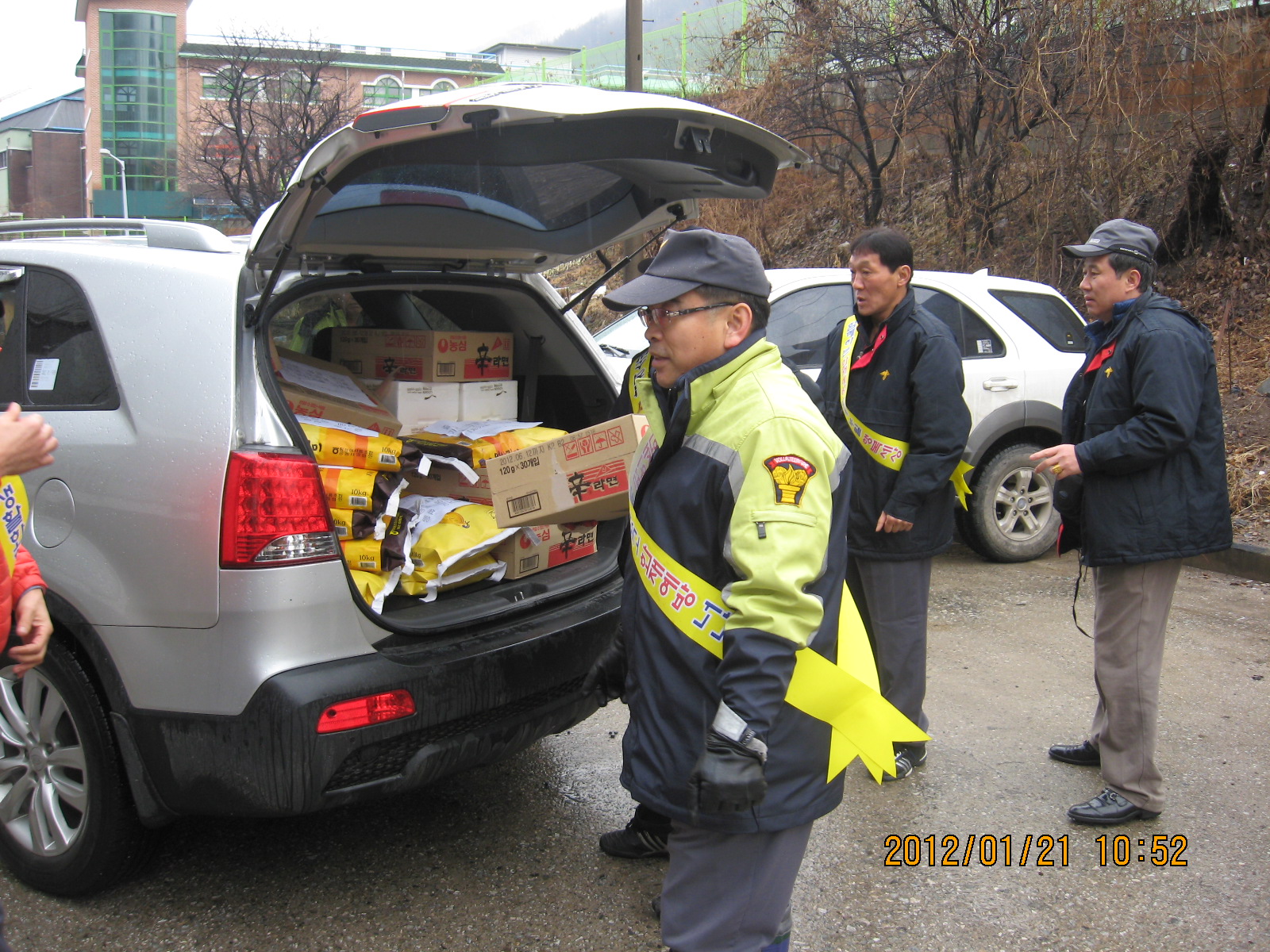 이웃돕기 4가구 선정하여 쌀10kg 2포대, 라면